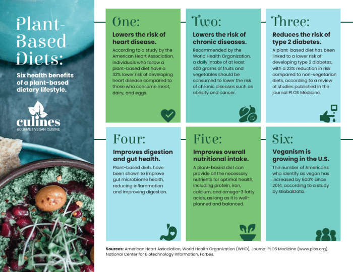 - Improving heart health: Plant-based diets are associated with a reduced risk of heart disease, high blood pressure, and high cholesterol levels.